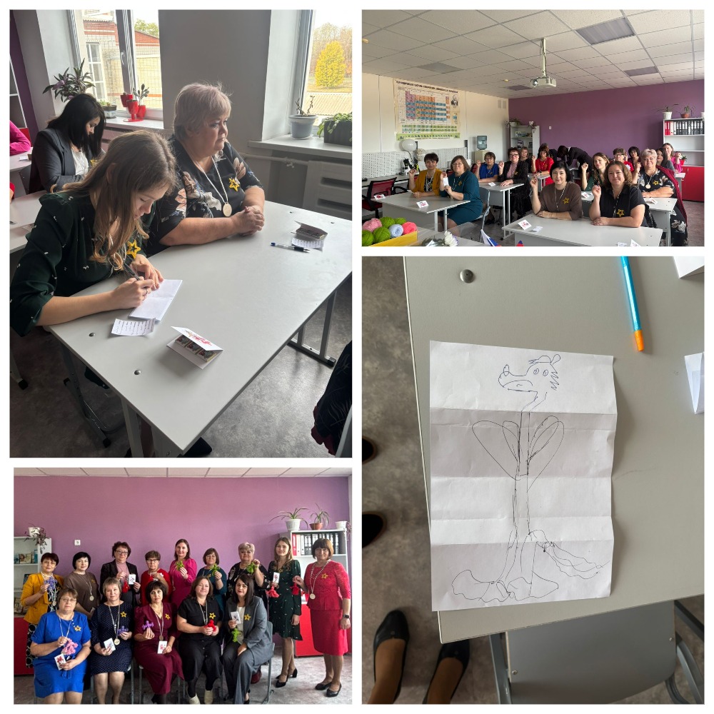 Украшения, перенесли всех в атмосферу кинопремии: красная ковровая дорожка, блестящие «НИКИ» и фотозона с элементами киноиндустрии. Каждый учитель стал номинантом в различных категориях.