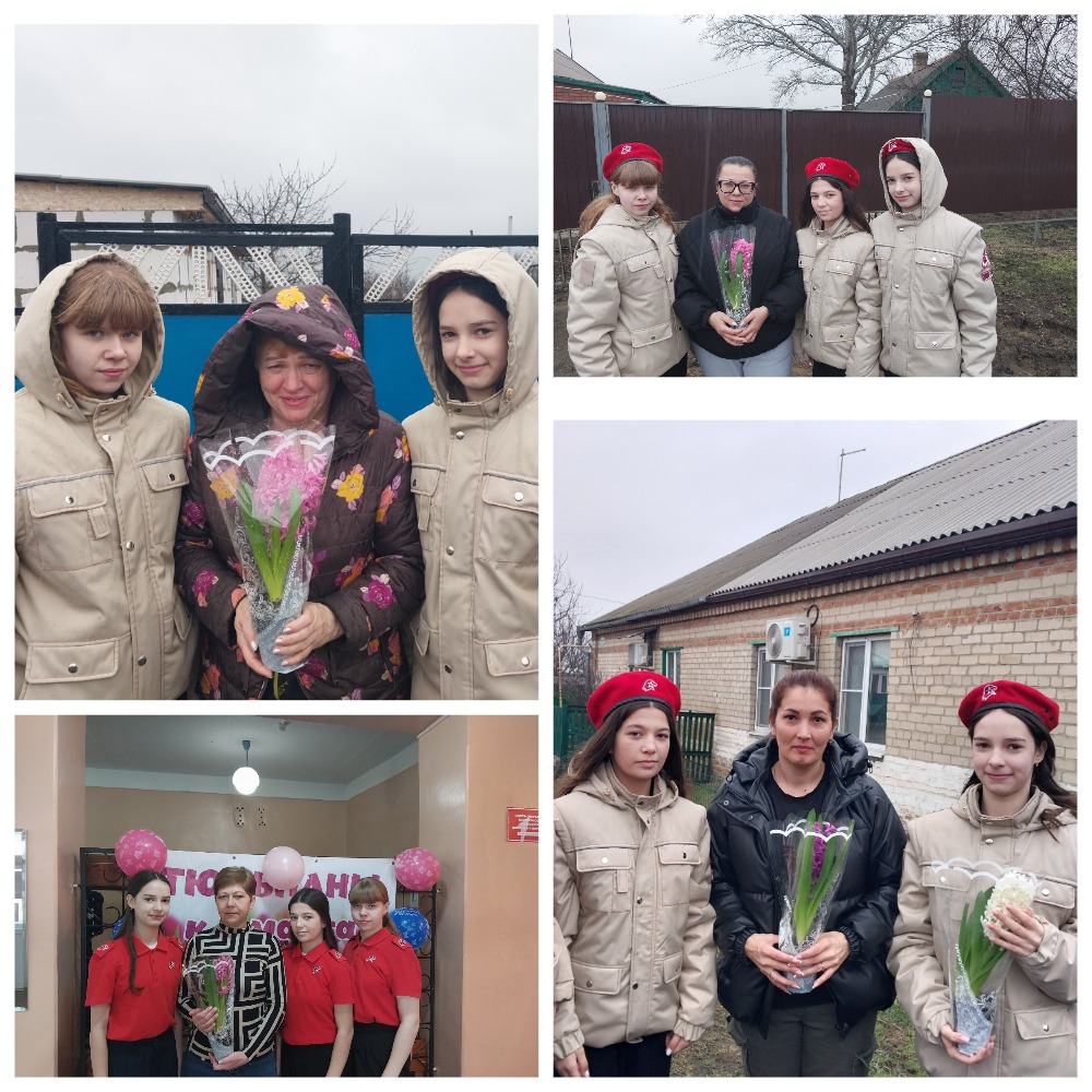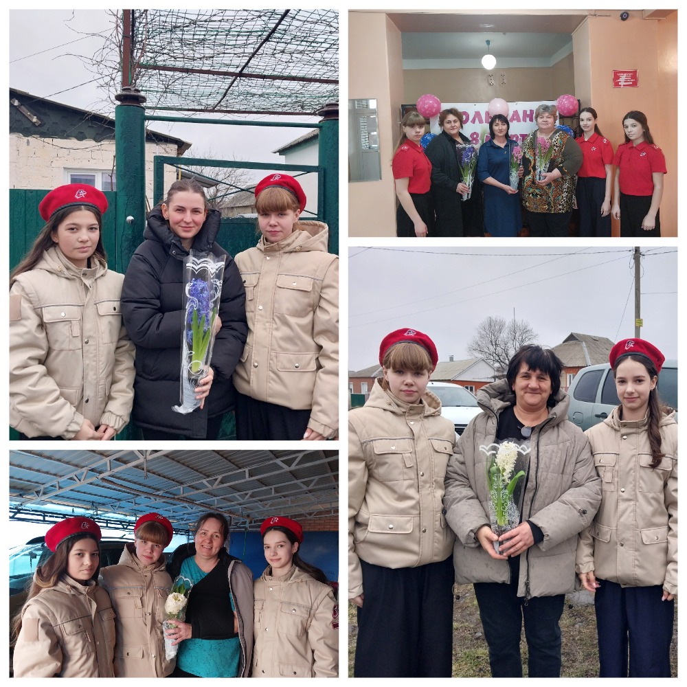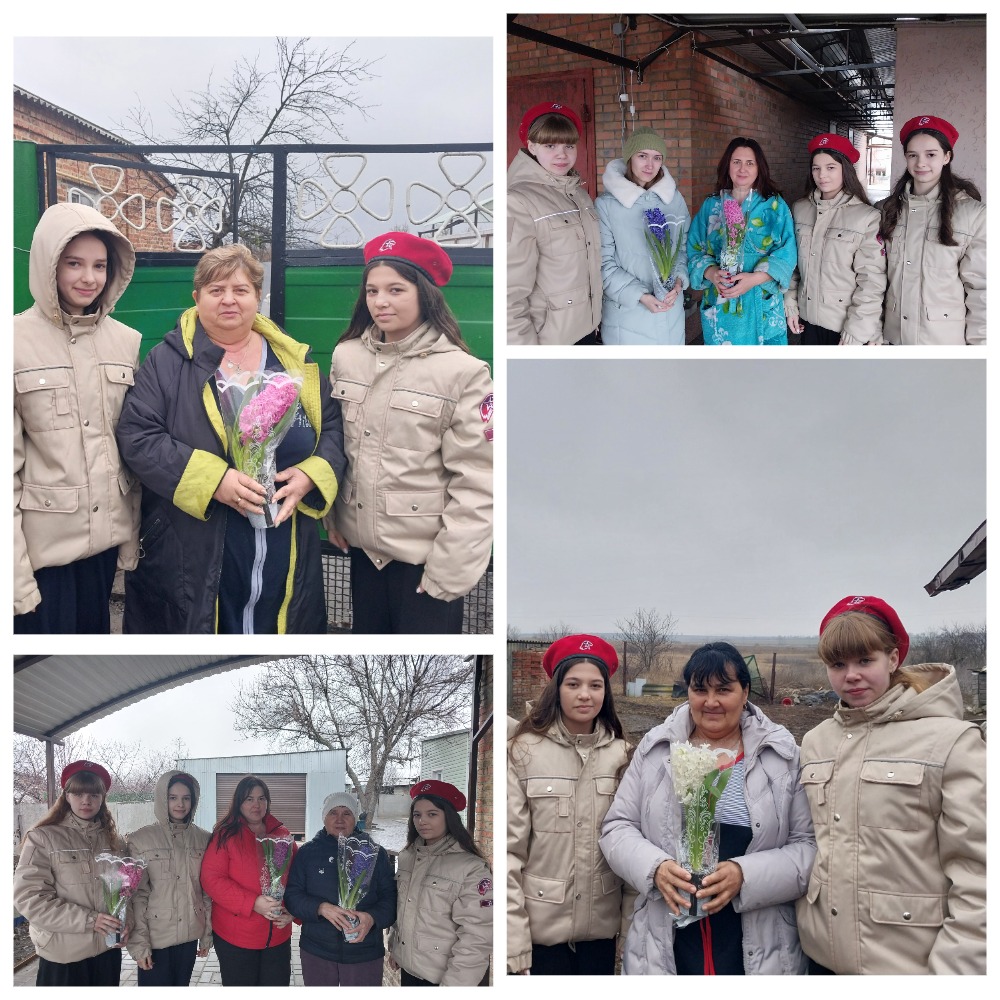 В преддверии Международного женского Дня, активисты Движения Первых, юнармейцы отряда «БАРС» совместно с руководителем отряда Лимаревой Е.Н. и советником директора по воспитанию Мегдеевой К.А. поздравили с наступающим праздником матерей, наших воинов-земляков, участвующих и погибших в специальной военной операции.