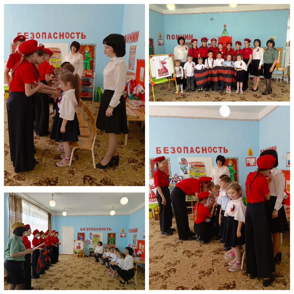 Ребята из отряда «БАРС» дали старт всероссийской акции «Георгиевская ленточка». Юнармейцы рассказали воспитанникам детского сада «Светлячок», о значении Георгиевской ленточки, почему она стала символом Победы и что обозначают цвета на ленточке: это цвета победы, цвета мужества и героизма, символ памяти и уважения к ветеранам. Малышам показали, как правильно завязать ленточки, и подарили эти символы.