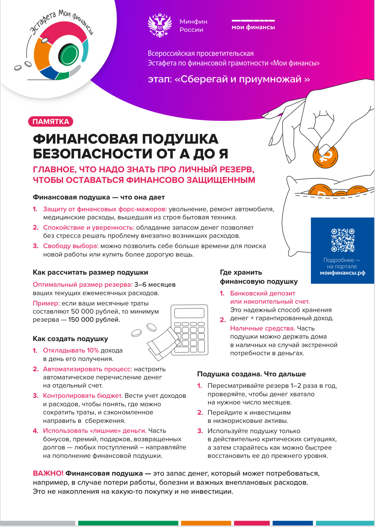 В 2025 году в рамках реализации Стратегии повышения финансовой грамотности и формирования финансовой культуры в Российской Федерации до 2030 года ФГБУ «Научно-исследовательский финансовый институт Министерства финансов Российской Федерации» на ежегодной основе запланировано проведение четырех тематических «Всероссийских просветительских эстафет «Мои финансы".